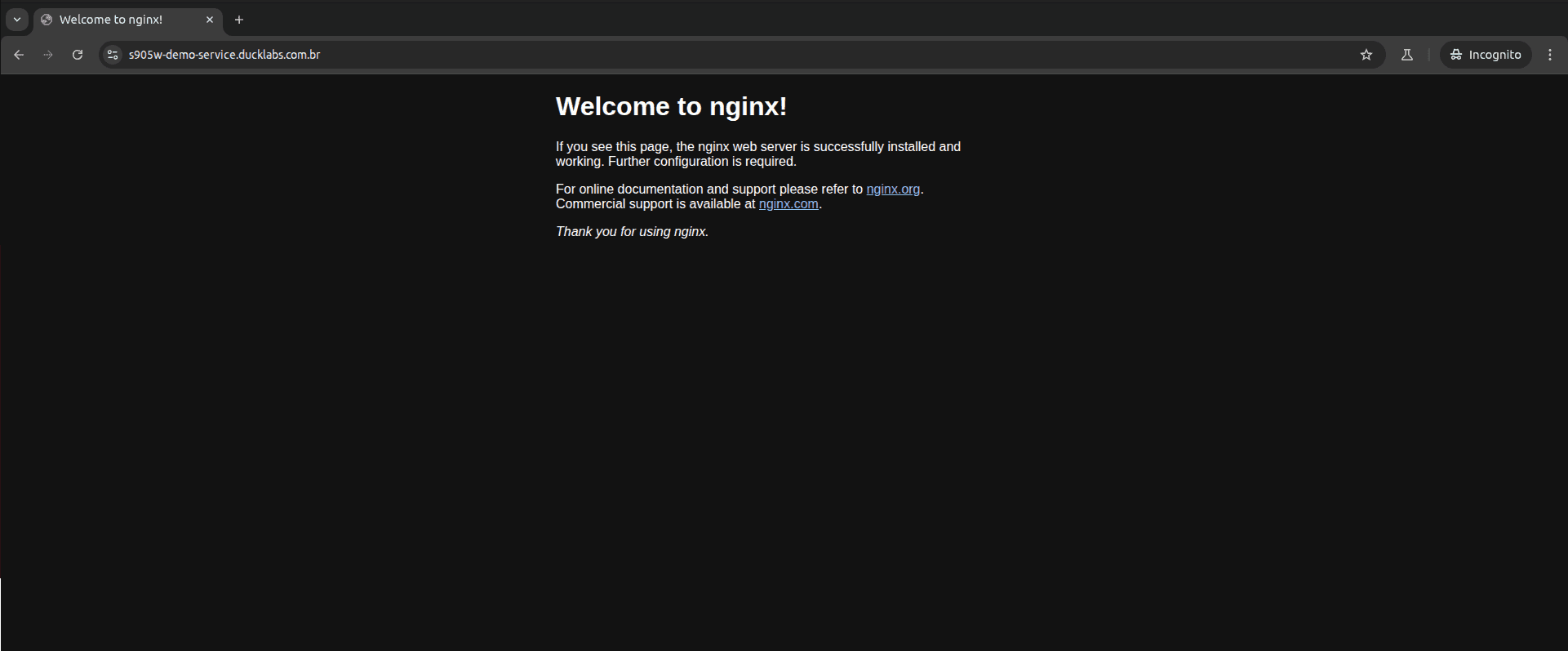 It is ready! Visiting the subdomain configured above, it is possible to see the Nginx's demo page: